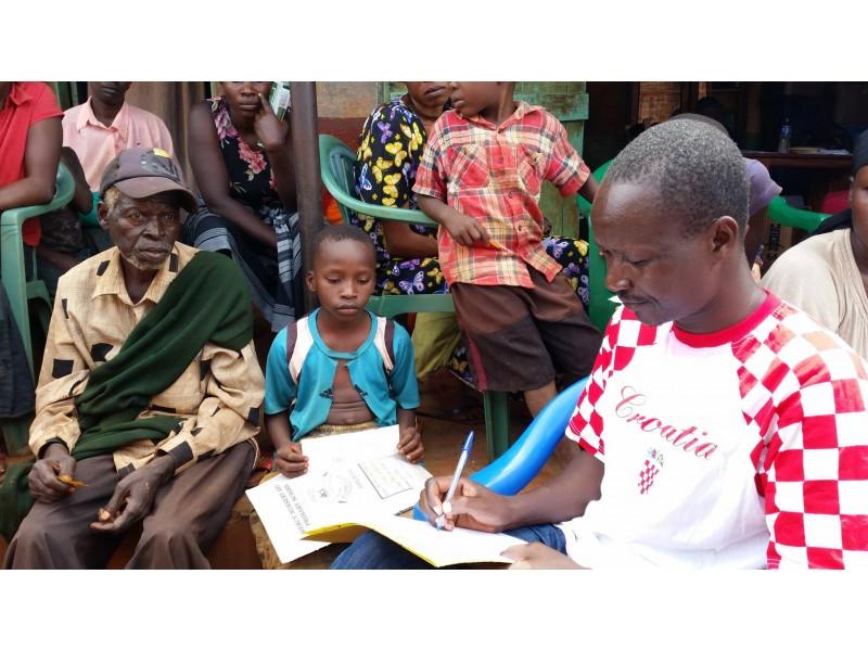 Kada pomislite da ne može biti teže nakon što smo odslušali priče djece u Osnovnoj školi Bugembe Blue, zatekao nas je neočekivano veliki broj djece s bakama, tetama, samohranim majkama ili očevima kojima je nužno potrebna pomoć. Prostor oko ureda gdje smo pozvali lokalnu djecu bio je prepun, tako da smo si morali olakšati nadzor dodjeljujući brojeve za redoslijed.