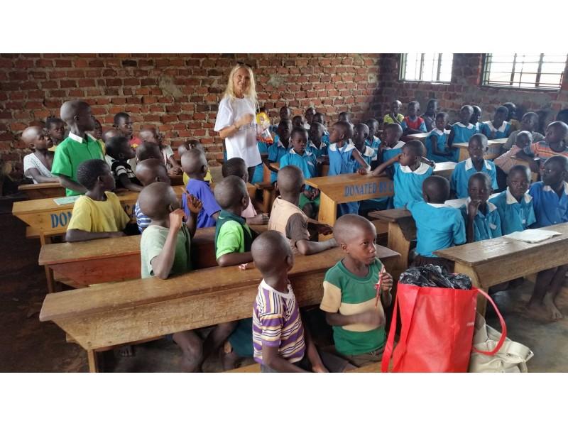 Put kao i svako putovanje po Africi nikada ne možete predvidjeti koliko će trajati. Ovisi o tome da li je sunčano ili pada kiša, da li su na cestama radovi i da li prolazite kroz neki grad gdje možete naletiti na neku gužvu. Mi smo na ovom putu imali sreću. Sve je bilo nama na ruku. Sunčan dan, bez velikih radova i gužvi. Brže od očekivanog stigli smo do mjesta Lugazi gdje nas je čekao Kayondo. Baš kako je gore objašnjeno, na Afrički način...polako ili kako oni kažu pole pole... i sve stigneš bez stresa. Nakon susreta sa Kayondom, možemo reći, započela je neka idila tog mirnog i vegetacijom raskošnog predjela. Prekrasno zelenilo na sve strane, što je povezano sa jezerom, kućice od prirodnih materijala, zemlje i drveta, cigli koje su također pečene od te specifično crvene zemlje, slamnati krovovi. Idilično, na prvi pogled, iako to siromaštvo, kod nas Evropljana i ostalih iz drugih razvijenih dijelova svijeta pobudi osjećaj sažaljenja. Ako si možete priuštiti ovo što smo si mi mogli priuštiti, a to je da se približite tim ljudima i da s njima živite njihov život, makar na jedan dan, shvatite kako nema razloga za sažaljevanje. Samo jednostavno spojite svoju energiju s njihovom. Ako ste donijeli neki dar dajte im ga i oni ga rado prihvaćaju. Možda im to pomogne da osjete nešto od života koji im je nedokučiv, a oni će vama za uzvrat dati pozitivnu vibru s kojom vi oplemenite sebe i bar mali djelić toga ponesete i donesete tamo odakle ste došli. Tamo gdje fali, upravo ta prirodna i neinficirana razmjena emocija i vrijednosti. Kayondo i njegova energija ponijeli su nas i dalje se samo događalo. Cilj je bio obići sponzoriranu djecu, Petru, Anitu, Anet, Defne, Florens, Edrina.....neke samo u školi, a neke i u školi i doma, jer su mogli izaći iz škole na kratko i provesti neko vrijeme sa nama kod kuće da im uručimo darove koje su im poslali sponzori. Tu je bilo dirljivih trenutaka između djece i Dragice koja ih sve poznaje, jer je odabir djece predano radila sama i pripremala djecu za sponzoriranje. Prekrasan je osjećaj bio vidjeti ih zajedno u tom dirljivom susretu i osjetiti zadovoljstvo, jer su sva djeca opravdala očekivanja i odlična su u školi. Učitelji za njih mogu reći samo najbolje, a majke s ponosom pokazuju reporte, odnosno svjedodžbe o rezultatima iz prethodnih razdoblja. Na svakom sponzoriranom djetetu se vidi napredak i bolji standard od ostale djece.