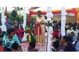 Cijela ceremonija je zabavna i stalno drži sve goste uključenima. Prati se sve što se događa na centralnom platou gdje je na američki način vijencima ukrašen svod za mladence. U završnom dijelu ceremonijala pojavila se prekrasna mladenka. Zaista je bila prelijepa. U predivnoj zlatnoj haljini i sa prekrasnom frizurom, jednom od ljepših izvedbi bogate pundže sa pletenicama i s puno cvijeća u kosi. Plesala je dok je dolazila na podij jednako dobro kao i profesionalni plesači koji su nastupali u cjelovečernjem svadbenom ceremonijalu. Kao i kod nas ta primopredaja mladenke traje uz pregovaranje između dva voditelja ceremoijala. Nama je ostalo nejasno da li su ti vješti govornici profesionalci koji samo to rade ili su to neki svjedoci kao kumovi kod nas. Nakon toga je uslijedilo darivanje. Mladoženjini uzvanici su u koloni nosili košare sa poklonima, žene na glavi one manje, a muškarci veće košare i predmete, kao što su namještaj, teška drvena komoda i fotelje.